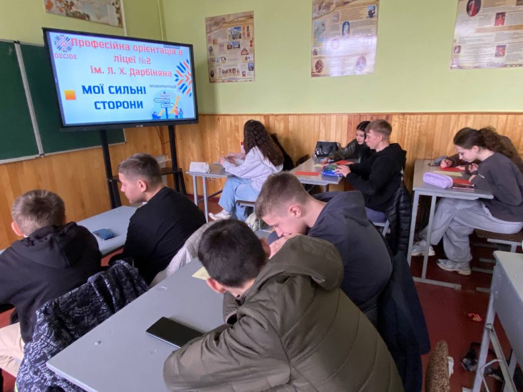 Сьогодні учні й учениці 8-Б та 8-В класів ліцею №2 ім. Л. Х. Дарбіняна Коростишівської міської ради зробили важливий крок назустріч майбутній кар’єрі. У межах швейцарсько-української ініціативи #DECIDE ми провели інтенсив «Мої сильні сторони», де кожен зміг поглянути на власні сильні сторони під іншим кутом.